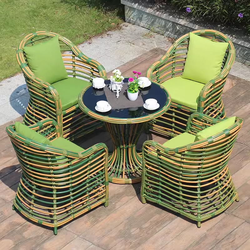 スターの藤の椅子の5つのセットのレジャーの屋外の家具のアイデアの粗い藤のベランダのテーブルと椅子の組み合わせの庭の卸売り