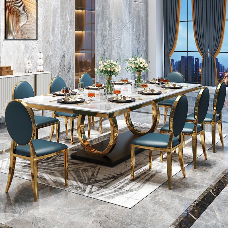 スターシティの後で現代の軽い豪華な食卓のステンレスの天然の貝殻の大理石のテーブルと椅子の組み合わせのヨーロッパの卸売り