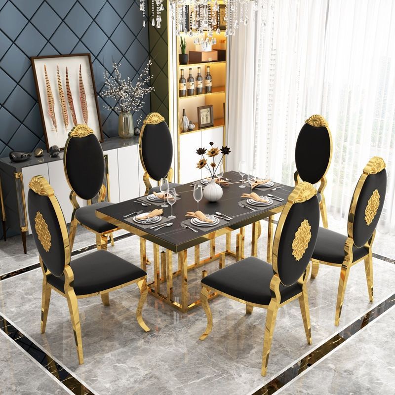 スター城の軽い豪華な大理石の食卓と椅子の組み合わせの長方形の現代の簡単な大きさの戸型の6卸売り