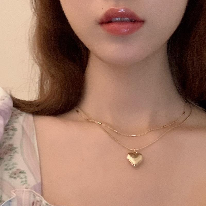 Ins冷淡ヒップホップ風鎖骨鎖二重愛ペンダント夏デザイン感女性小衆デザイン感軽贅沢ネックレス