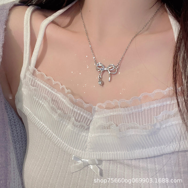 Ins日韓風小衆デザイン感蝶結びネックレスペンダント少女心小清新に鎖鎖鎖を入れるプレゼント