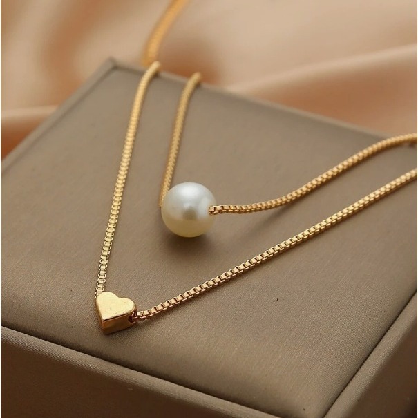 欧米の外国貿易の越境する新しいアクセサリは簡単に真珠の愛の2層の箱のチェーンのネックレスの設計のペンダントのネックレスに似せます。