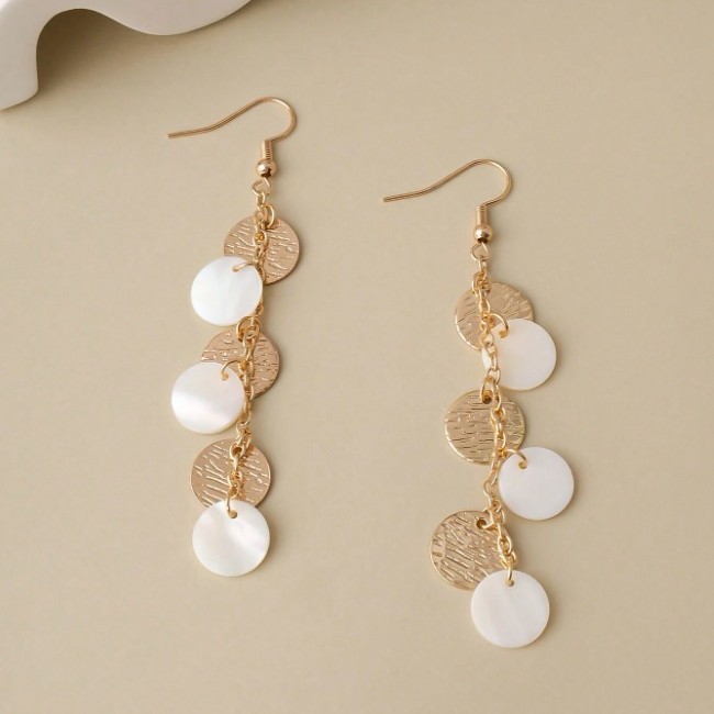 ヨーロッパとアメリカのクロスボーダータッセルシェルイヤリングシーサイドレディース2025ハイエンドイヤリングライトラグジュアリーニッチホリデースタイルイヤリング