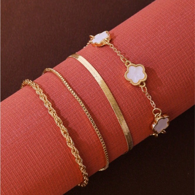 欧米の国境を越えたボヘミアンの極めて簡単な手飾りは真珠の鎖の五弁の花の部品の4つのセットの鎖の卸売りに似せます。