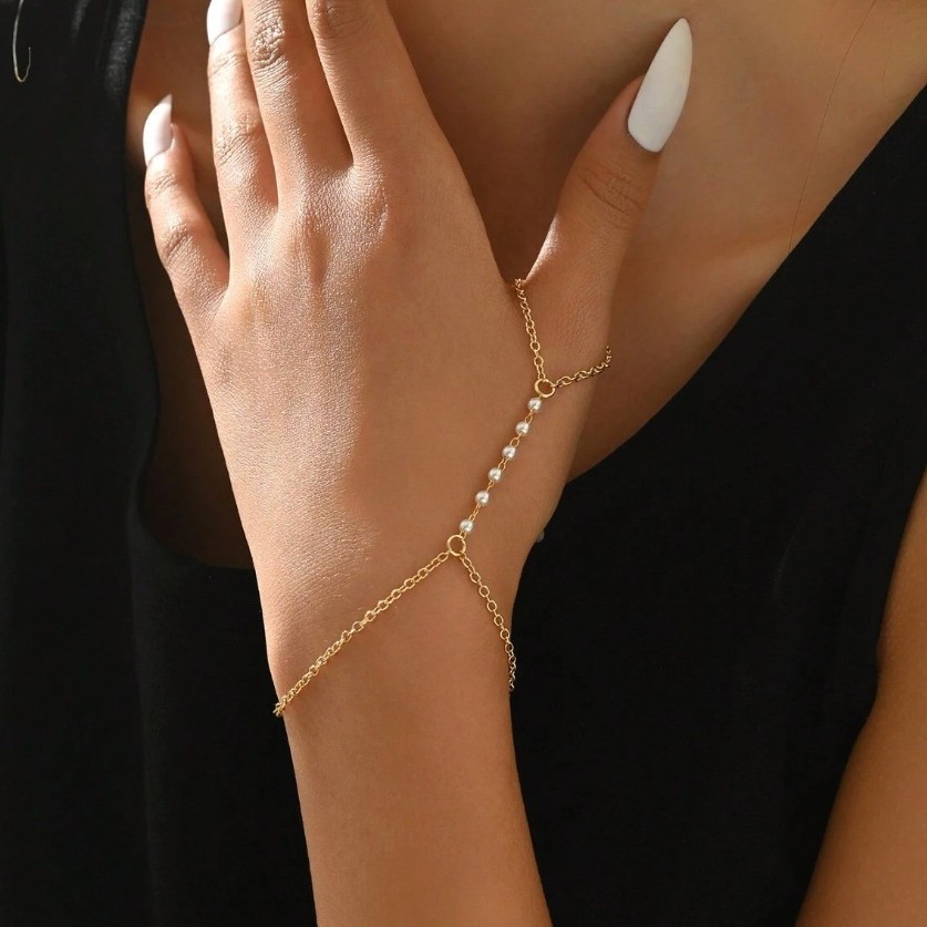 欧米の国境を越えたチェーンブレスレットins風シンプル真珠愛チェーン多層指チェーン合金指飾り