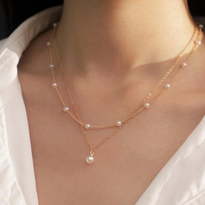 欧米国境を越えたアクセサリー水滴吊り式平円ビーズ鎖骨鎖個性金属風ネックレス多層金属ネックレス