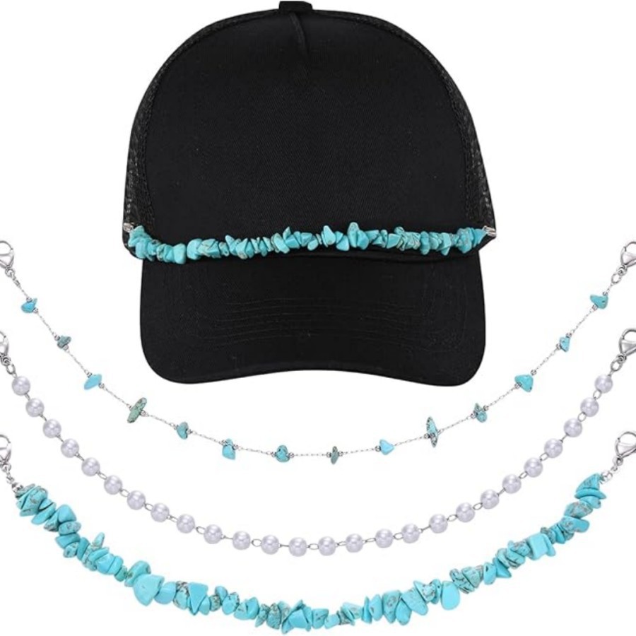 ヨーロッパとアメリカのクロスボーダージュエリーファッション不規則なターコイズ模造真珠キューバフィッシュボーンチェーンハットチェーンセットパーソナライズされたヘッドチェーン