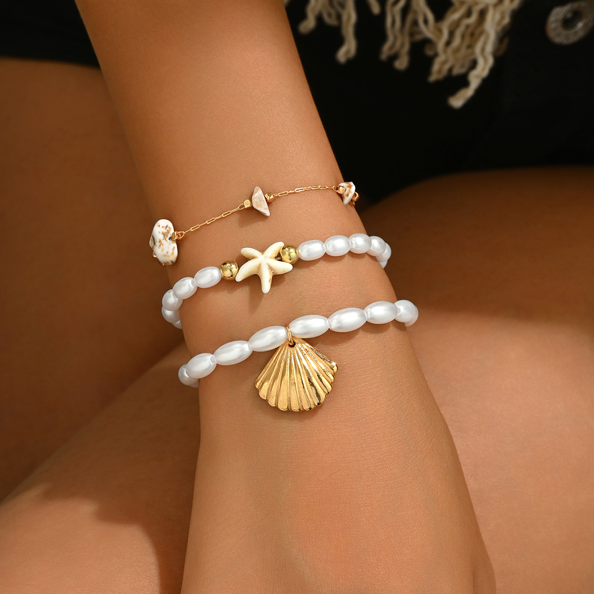 ヨーロッパとアメリカの国境を越えた新しいシンプルな人工真珠の貝殻ペンダントブレスレットクリエイティブレトロフットジュエリー女性のジュエリー卸売