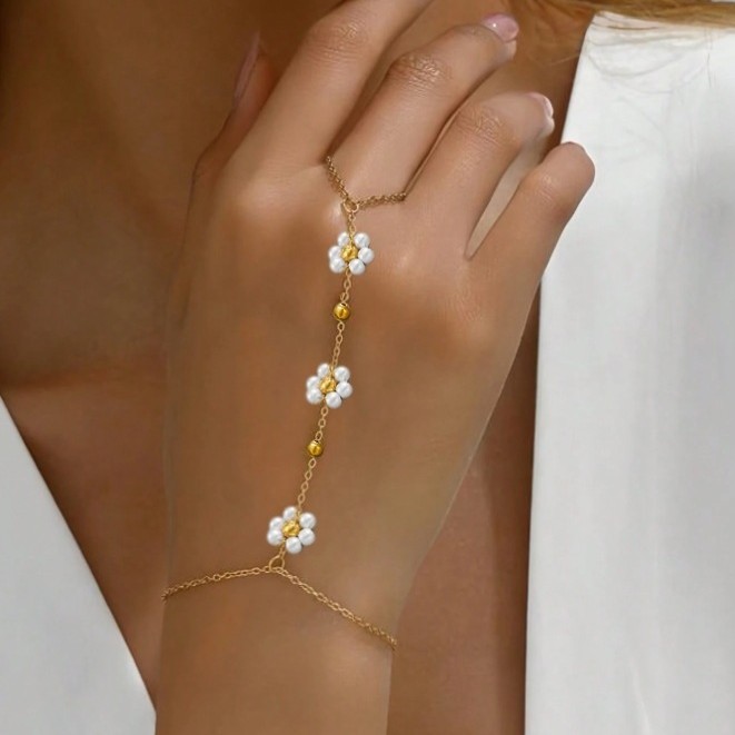 ヨーロッパとアメリカのクロスボーダー春ステンレス鋼手作りビーズチェーンフラワーパールフィンガーチェーンニッチハイエンドブレスレット