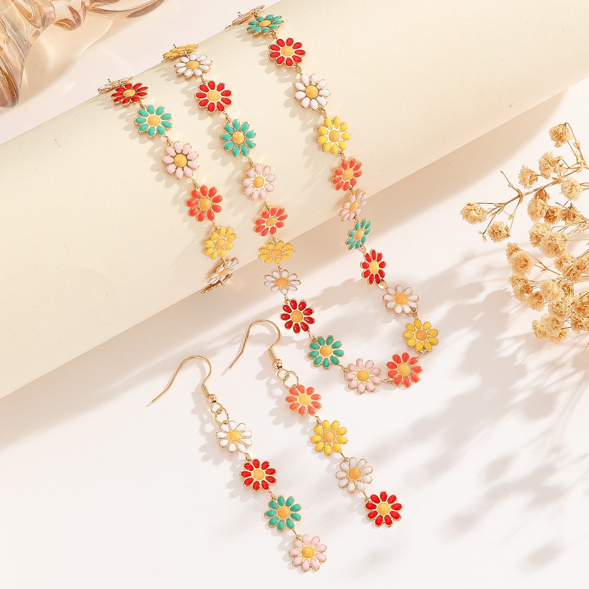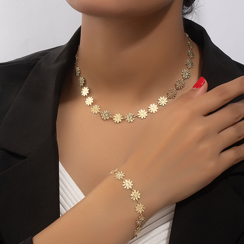 国境を越えた売れ筋ジュエリー、パーソナライズされた大きなデイジーの花のネックレス、イヤリング、ブレスレットセット、シンプルで軽い高級鎖骨チェーン