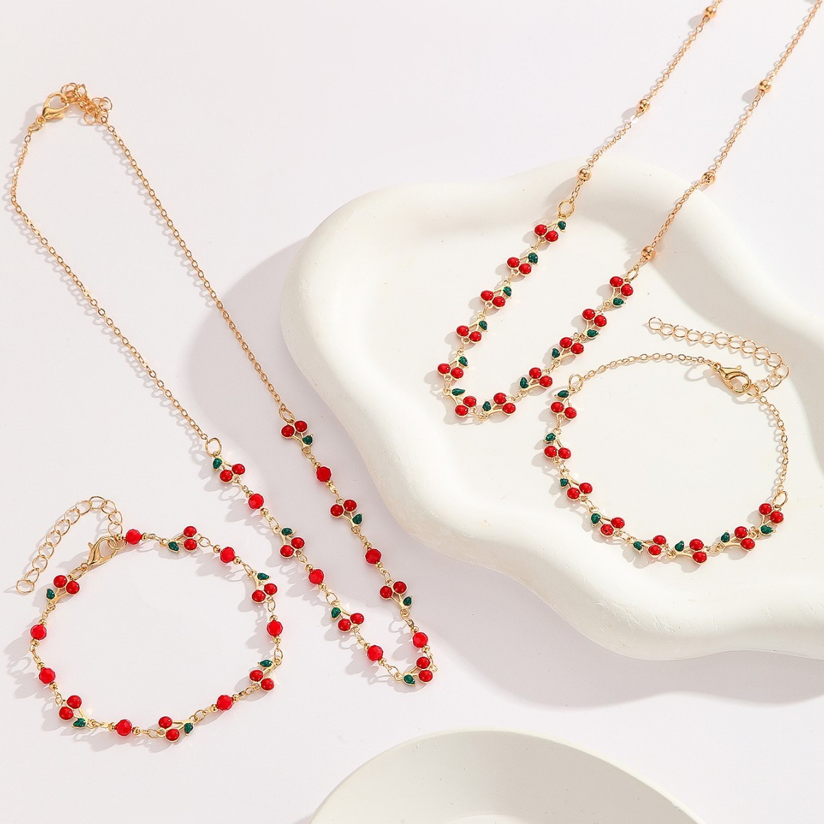 ヨーロッパとアメリカの売れ筋の新しいチェリーネックレスシンプルでクリエイティブなフルーツチェリー夏のファッションブレスレットネックレスセット卸売