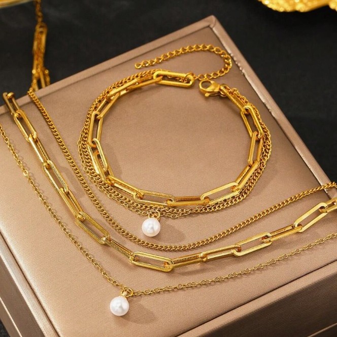欧米の国境を越えた個性的な金属刀チェーン三点セット真珠のブレスレットセット