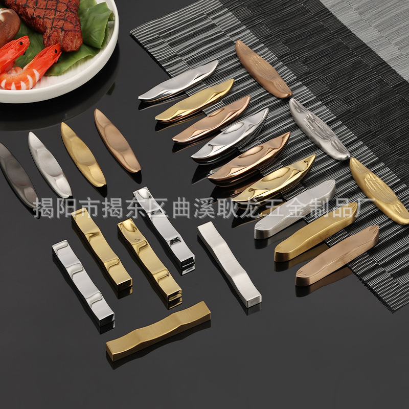 自産現物創意ステンレス箸托銀杏葉日本式レストラン箸棚に箸を置いて箸を並べて枕をします。