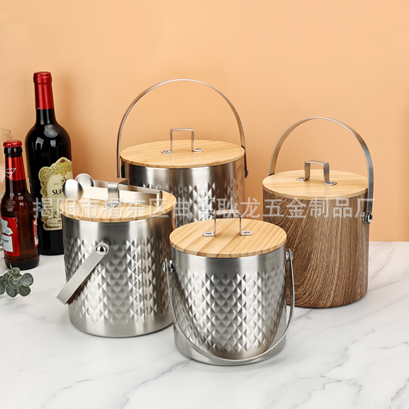 ネット赤二層ステンレス氷桶氷粒バー商用シャンパンビール桶菱紋KTV木蓋氷桶卸売り
