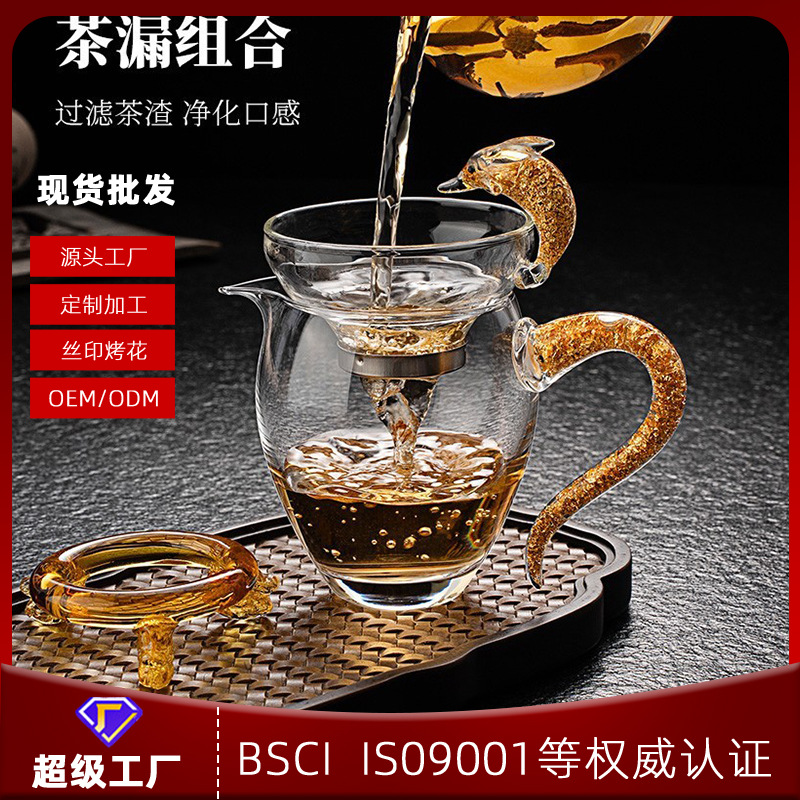 メーカー卸売り日本式金箔公道杯蔵金耐熱ガラス茶漏れセット高級工夫茶器茶海