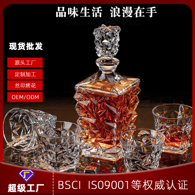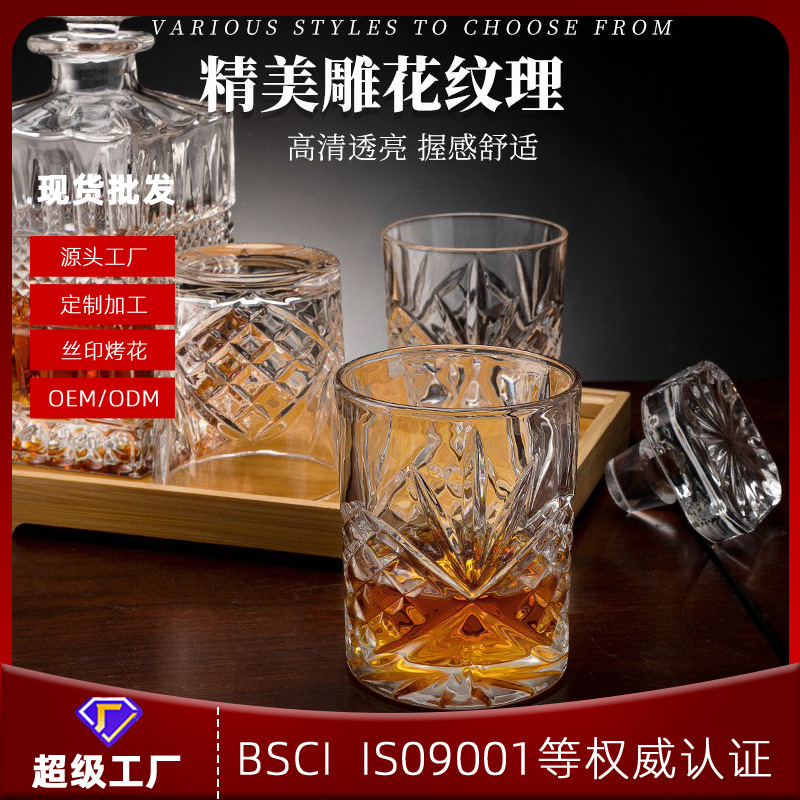 ヨーロッパ風ウイスキーグラス家庭用高級水晶ガラス洋杯創意彫刻酒樽バーセット卸売り