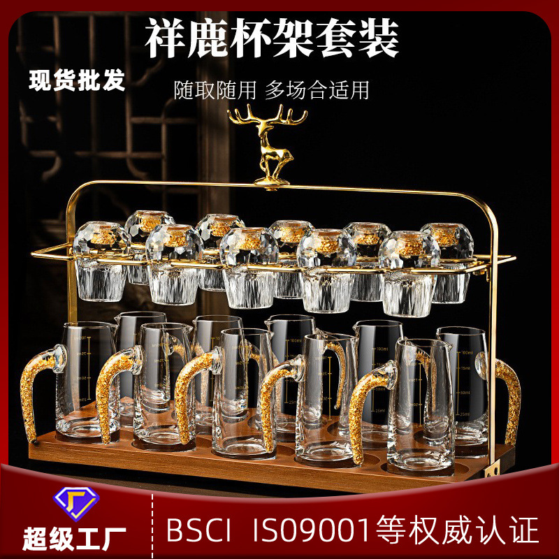 中国式水晶ガラス白杯セット家庭用軽豪華高級黄金分酒器列杯
