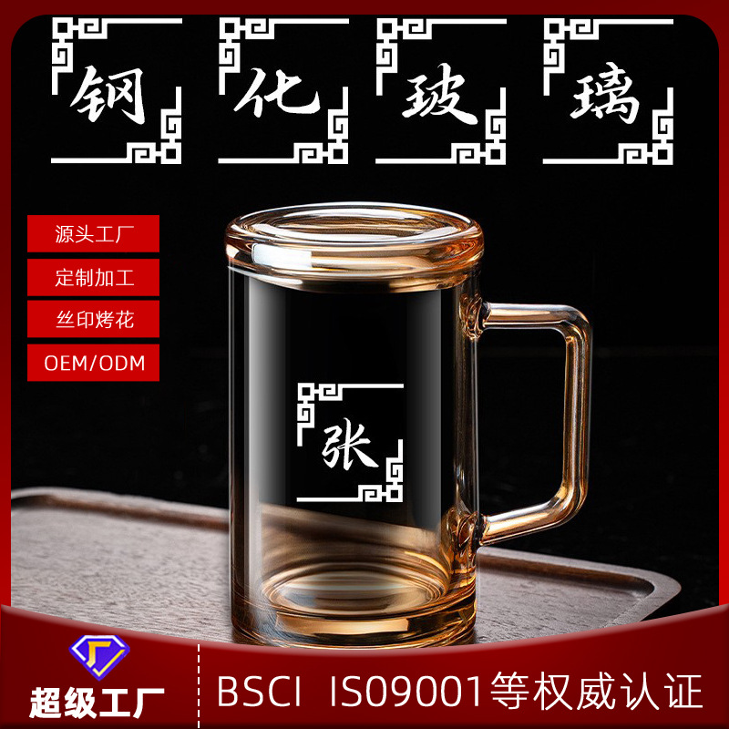 卸売ガラス緑茶カップマスターカップ分離カップオフィスホームドリンクカップレトロティーカップは彫刻することができます