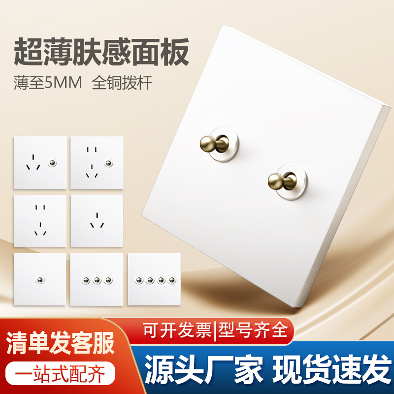 壁超薄型肌感触白レバースイッチパネル 86 タイプ 5 穴ソケット家庭用卸売 1 オンスングルコントロール 2 または 3 プラグ