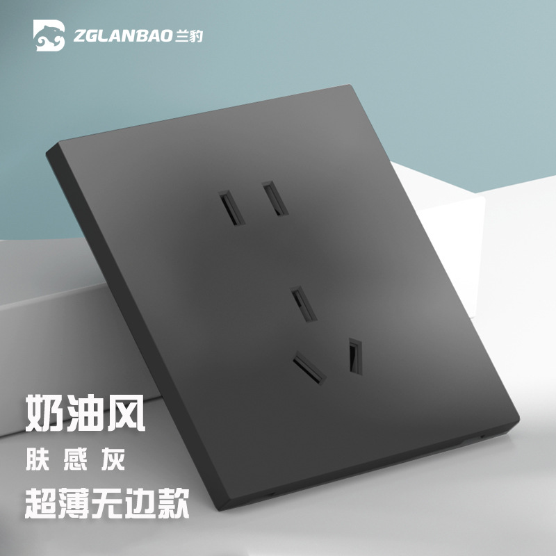 蘭豹強化ガラススイッチソケット86型水色五穴ソケット新型明るい鏡面単開パネル卸売り