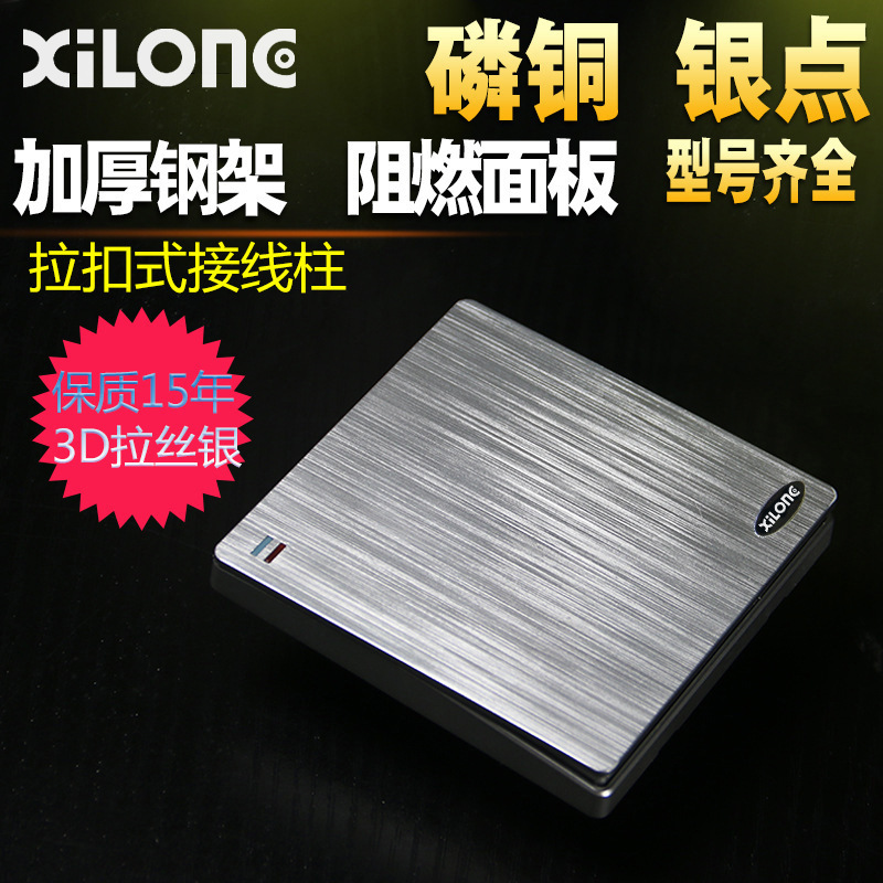 LED付き家庭用スイッチソケット一開単制御ステンレス製伸線灰黒暗装二重開パネル壁スイッチ