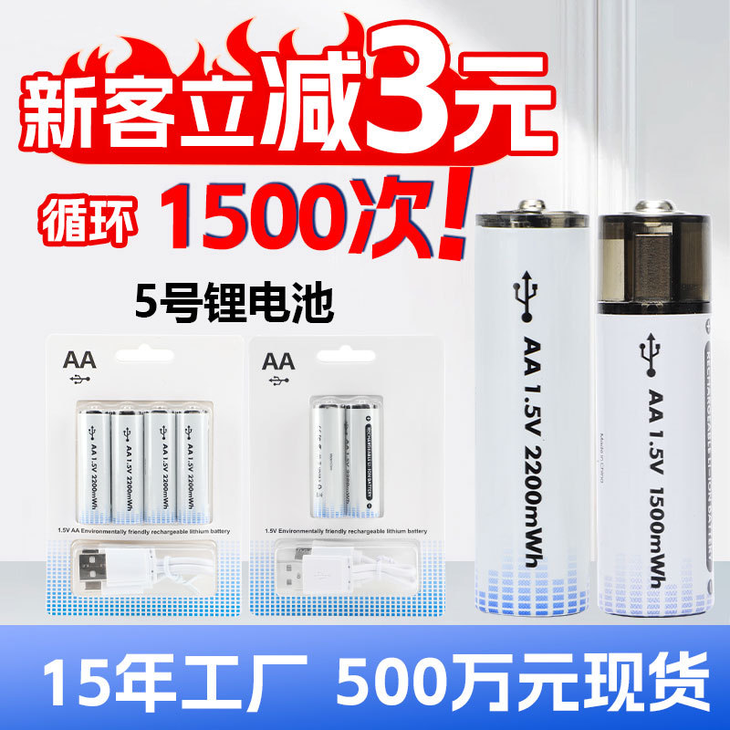 5番充電電池卸売りType-CインターフェイスUSBリチウムイオン1.5v電動玩具AA 5番充電電池