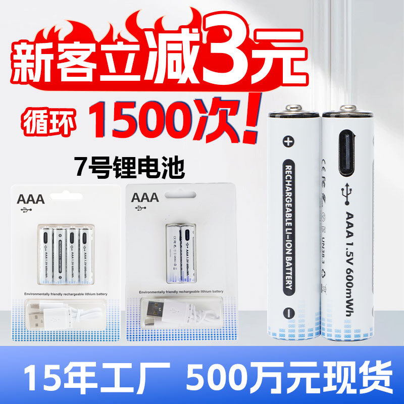 7番充電式バッテリー卸売Type-CインターフェースUSB電動1.5V玩具AAA 7番充電式リチウム電池