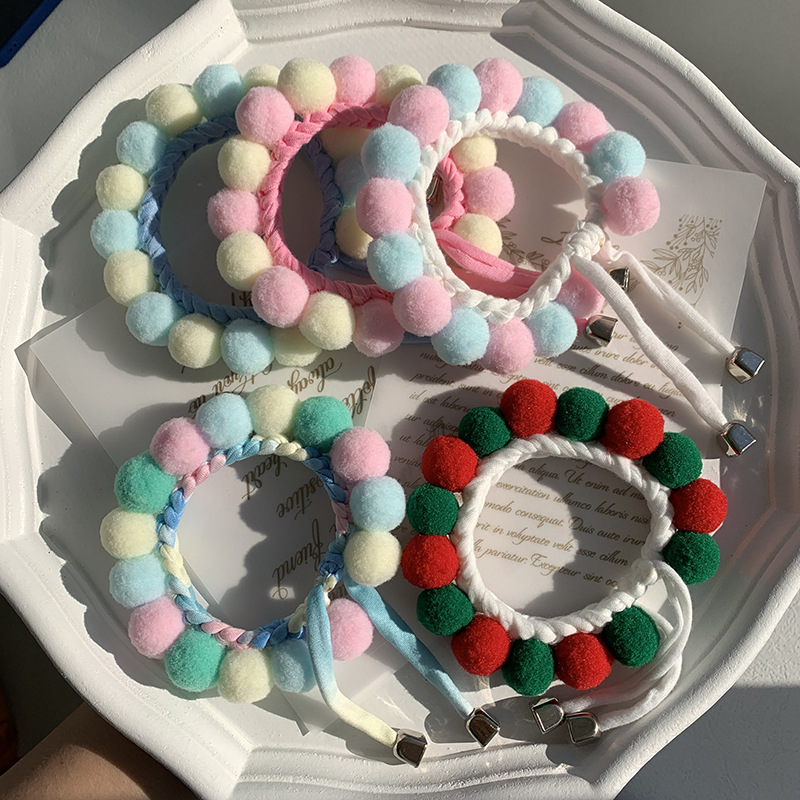 ペットの首輪の毛玉の猫は首を囲んで手作業でぬいぐるみの首輪を編みます。