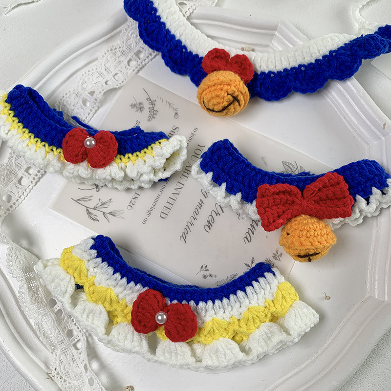 毛糸無声鈴編みかわいい小型犬猫手作りニット猫静音首輪ペットアクセサリー
