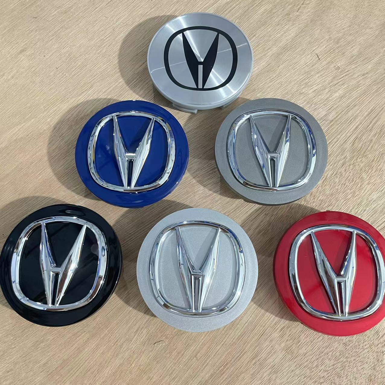 アキュラホイールキャップ 69 ミリメートルシルバーブラックタイヤセンターカバーホイールロゴレッド改造車メッキに適しています
