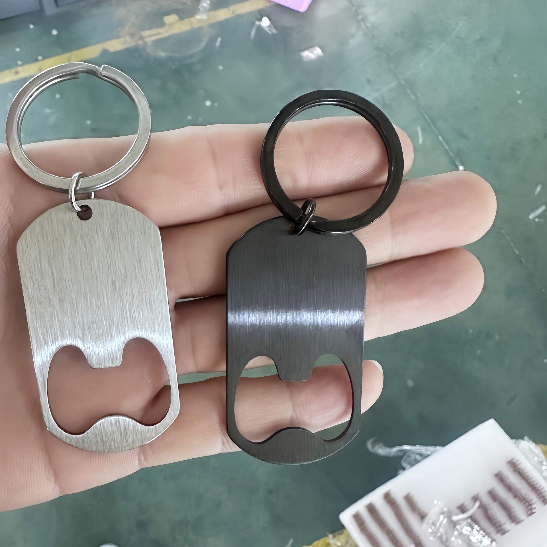 ステンレス鋼ブランク栓抜きキーホルダー写真とサンプルロゴ彫刻ジュエリーペンダント記念ギフトペンダント