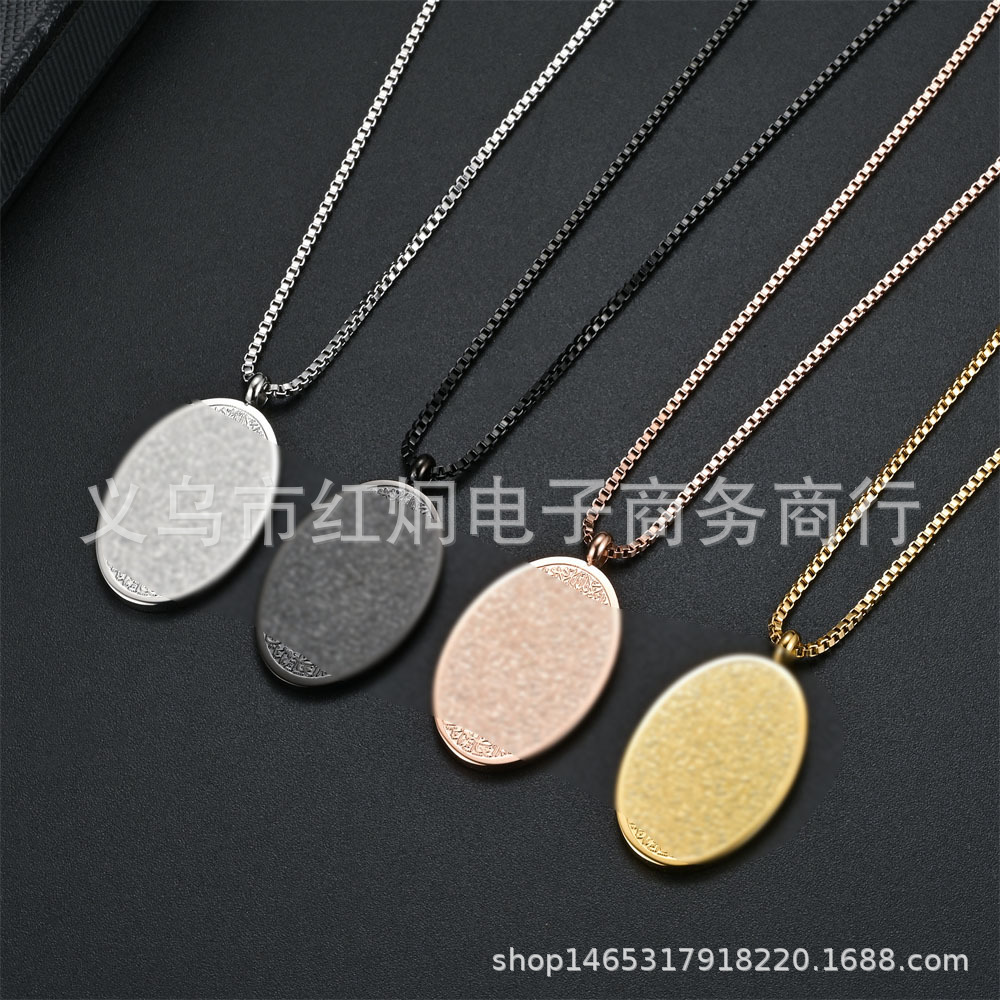 国境を越えたエッチング文字ネックレスペンダントステンレス楕円形ペンダントレリーフ効果チタン鋼ネックレス