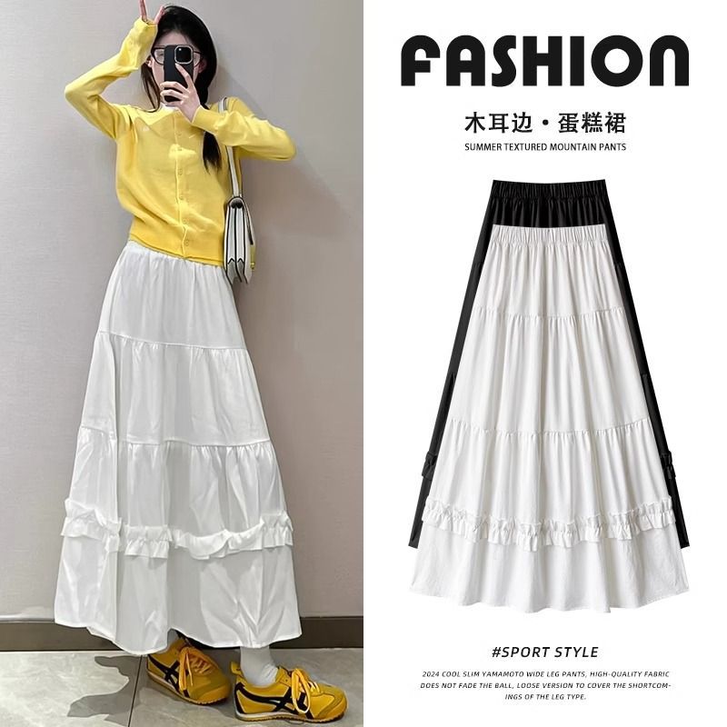 白いケーキのスカートの女性の春の夏の2025新型の高腰はやせています。