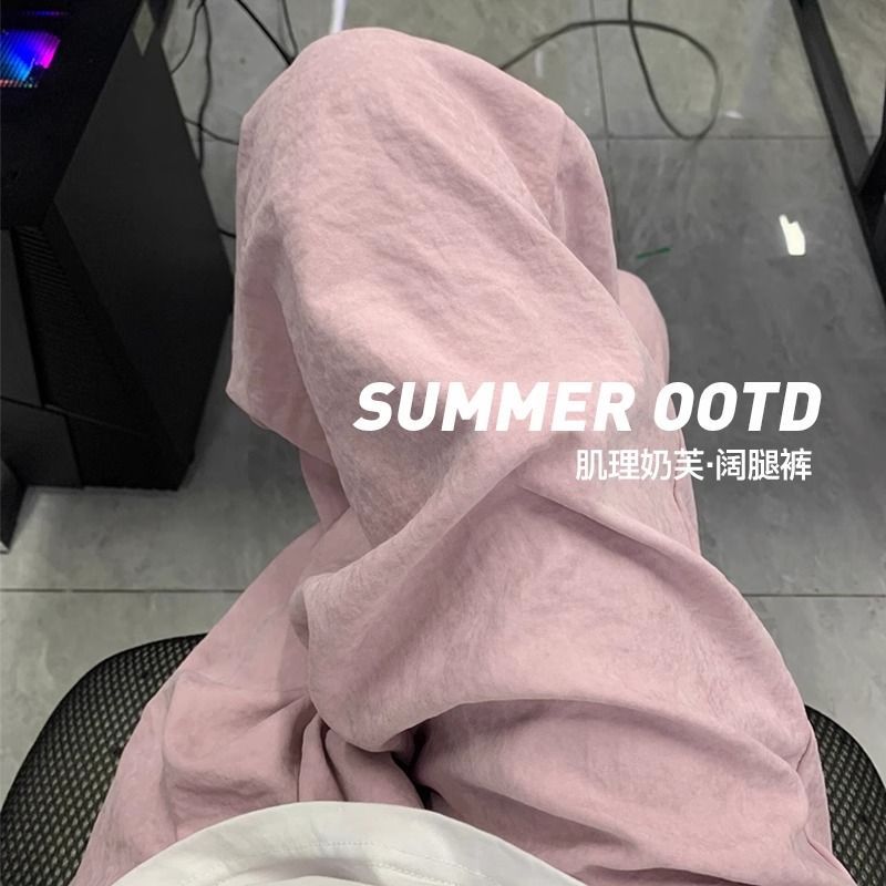 ピンクの乳芙の山本のズボンの女性の春と秋の夏の2025の新型の高い腰の垂れ下がっている感じのゆったりしているカジュアルな小さい背の広い足のズボン