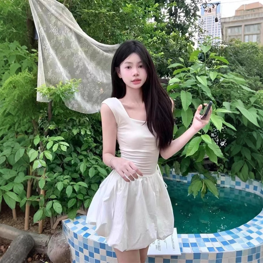 バレエ風の方襟のひものつぼみのワンピースの夏の新型の甘い系の少女感は腰のベストの短いスカートを収めます。