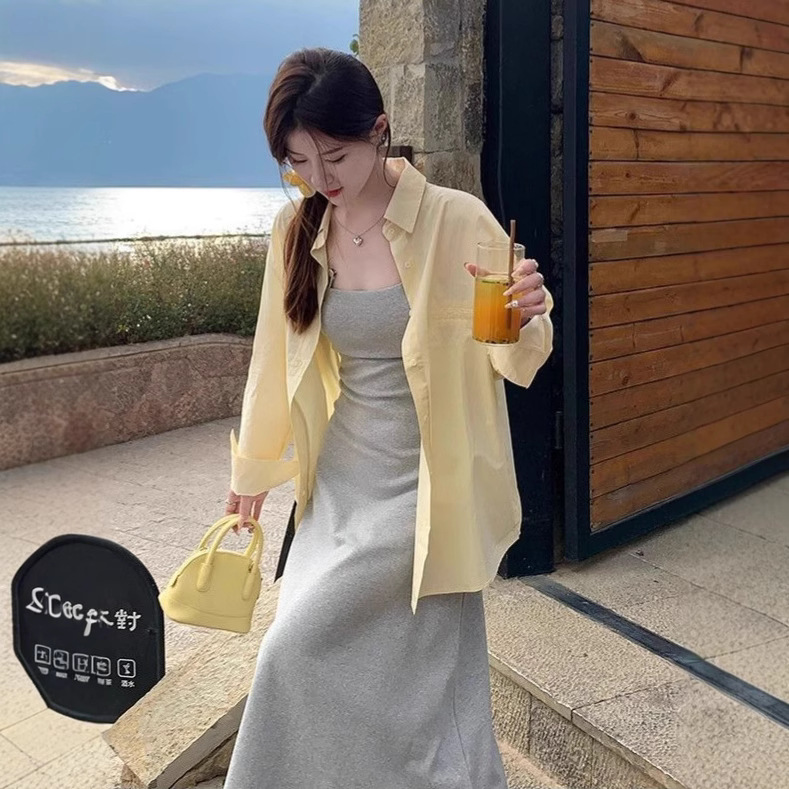 黄色の夏の日焼け止めシャツのコレクションの女性の薄いタイプのカジュアルな百合のゆったりしていて怠惰なカーディガンの新型