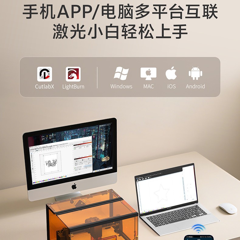 K15 小型レーザー彫刻機、保護カバー付き、マルチモジュール接続カメラ位置決め