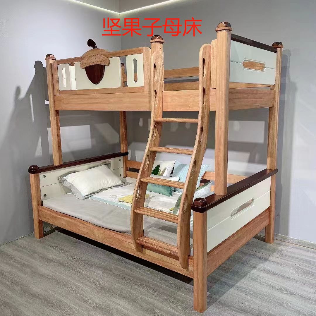 全実木熊上下ベッド男の子女の子高低ベッド赤檀木ワックス油子母ベッド上下同幅二重