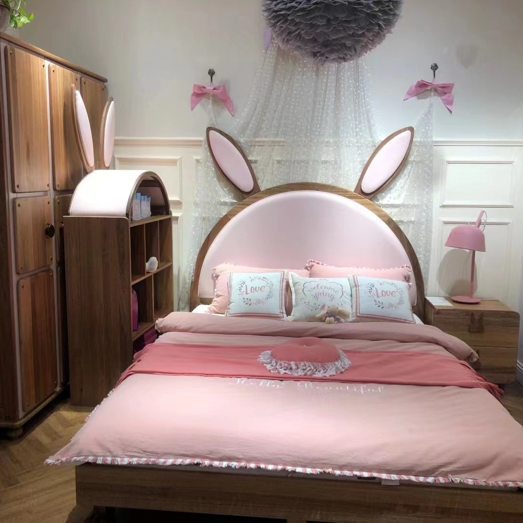 女の子ミッキーベッド雲輪ベッドお姫様ベッドネット赤爆金ウサギベッドソフトベッド赤檀檀糸木