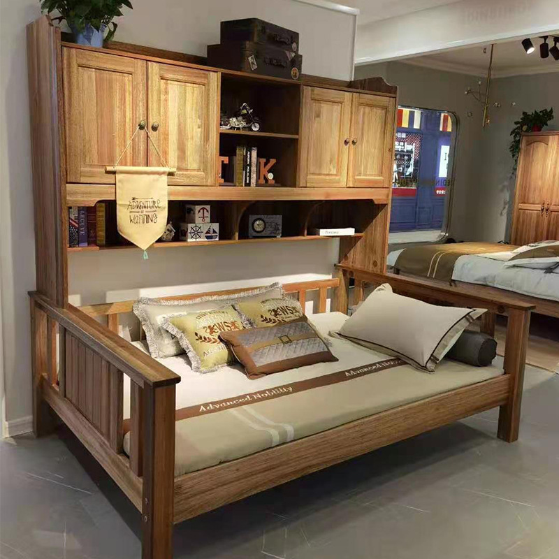 メーカー直供全実木檀糸木箪笥組み合わせベッド多機能棚ベッド本棚ベッド木蝋油子供用ベッド