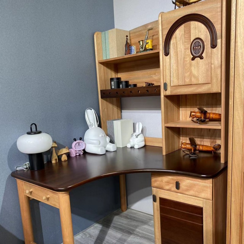 紅檀木オークマンコーナー机コーナーパソコンデスク子供机木蝋油原木色コーナー学習テーブル