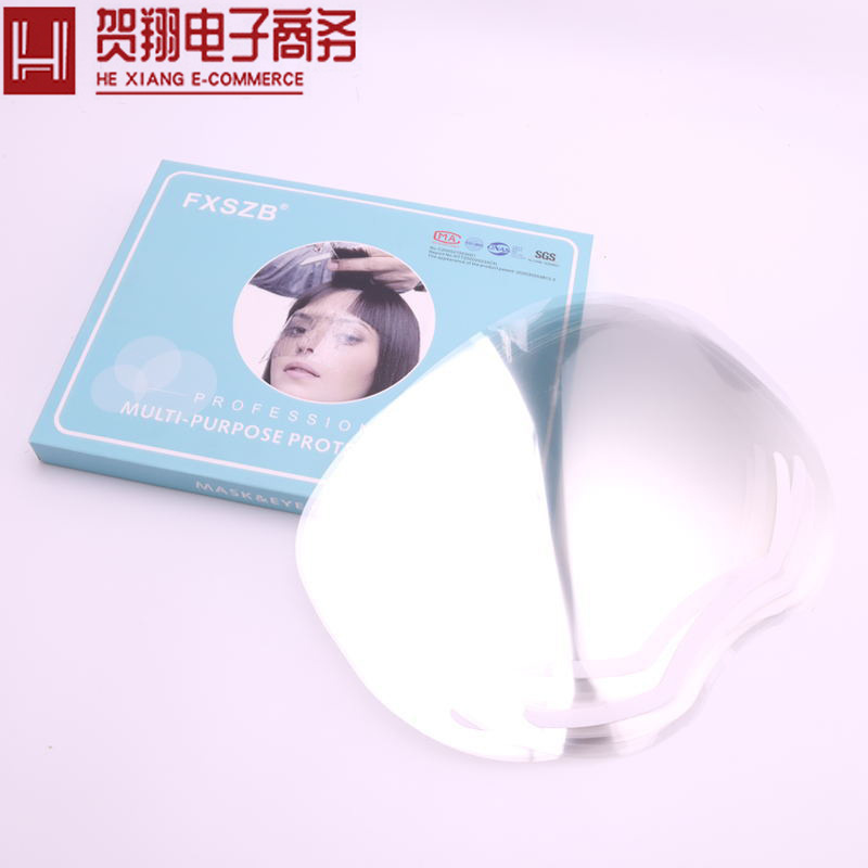 理髪店の使い捨ての髪割れ防止透明マスクの髪を切って顔を隠します。