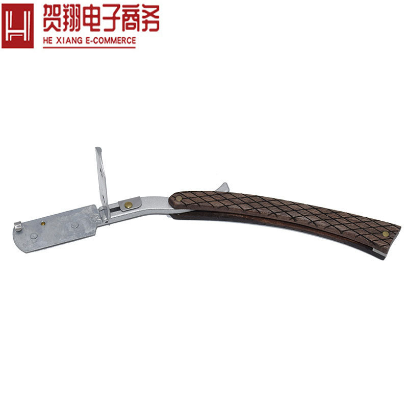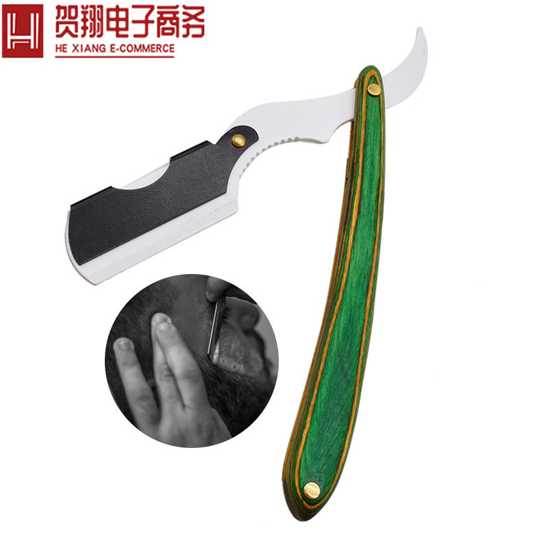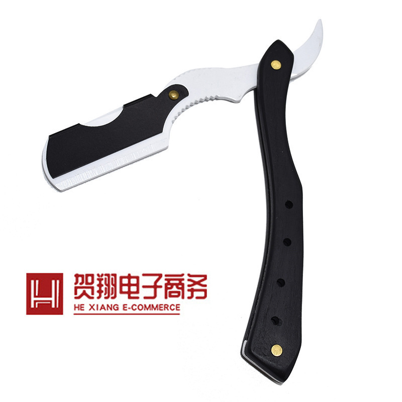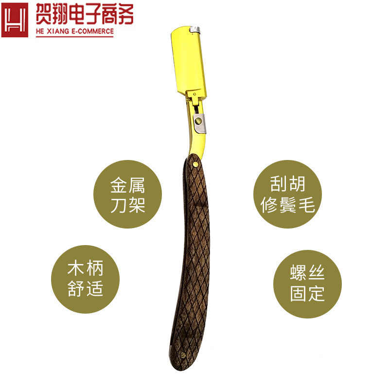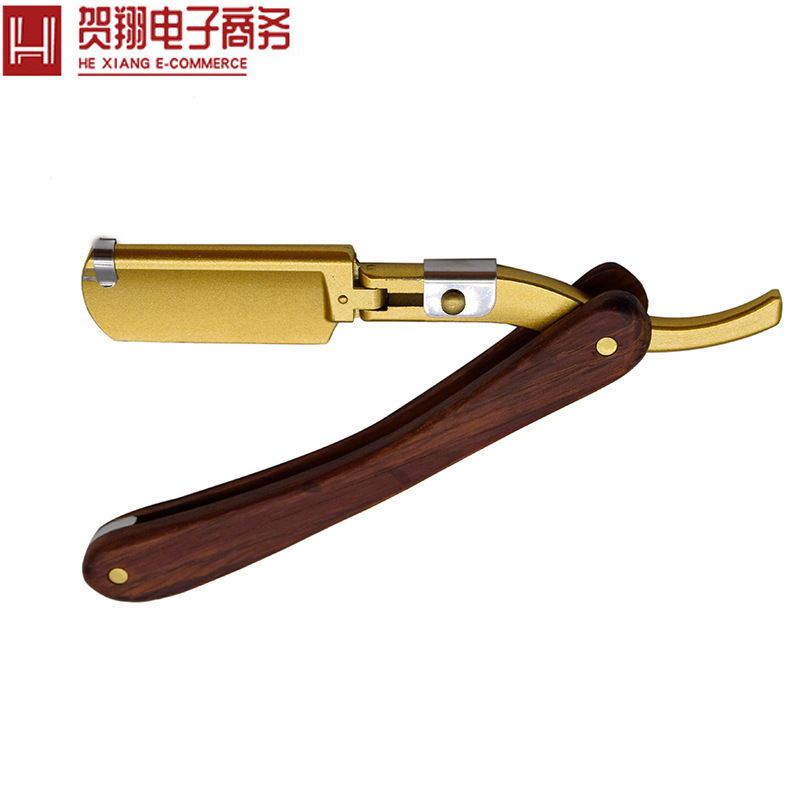 手動かみそり古いステンレス折り畳み木柄金色刀架男性スクレーパーかみそり卸売り剃り器