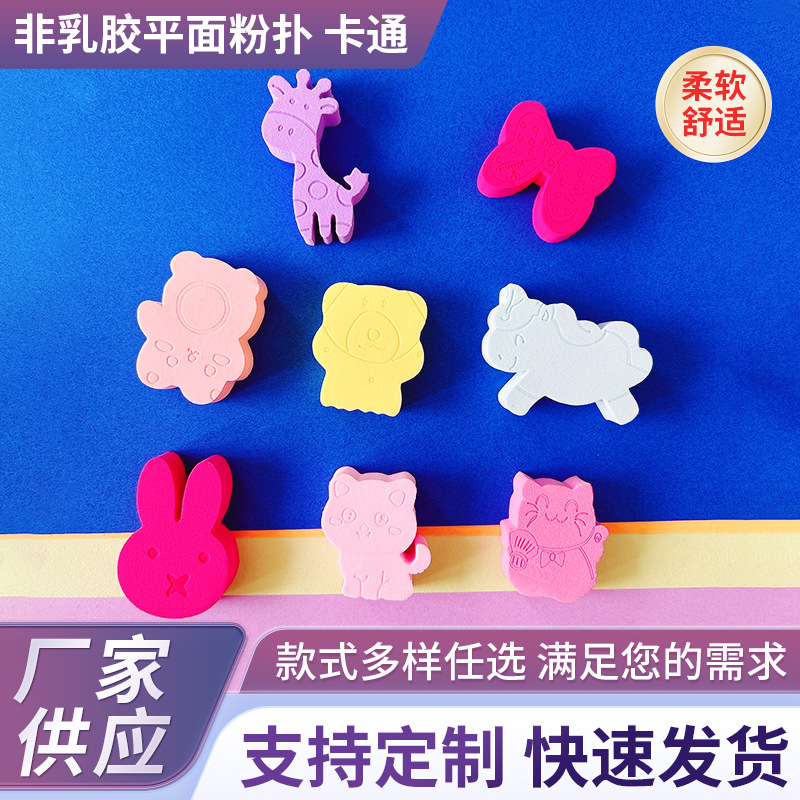 非ラテックス平面パフアニメ動物平面パフQ弾親肌乾湿両用携帯メーカー卸売り