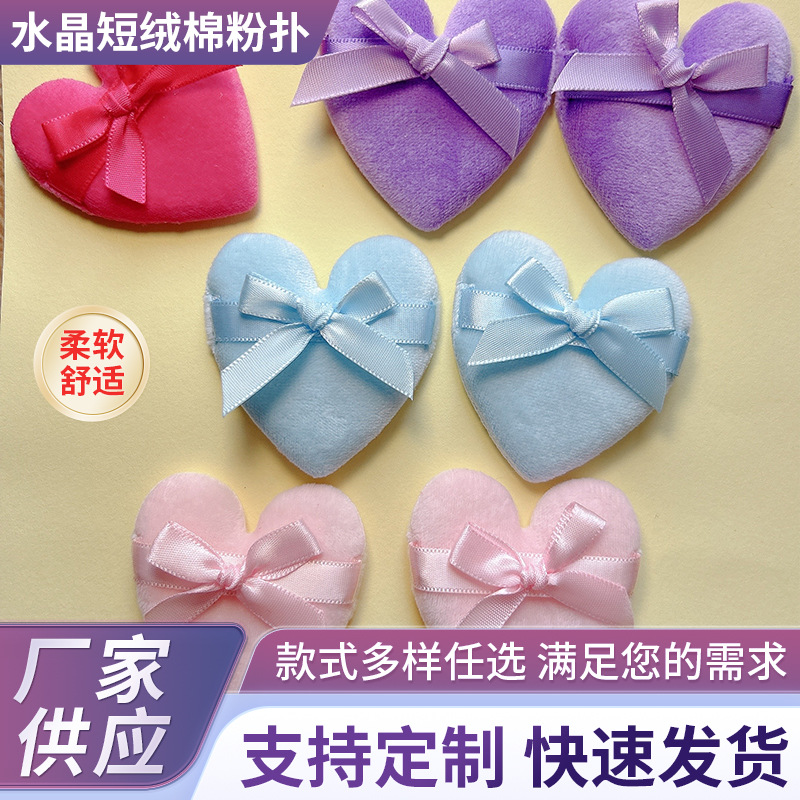 メーカー現物水晶短パイル綿パフリボン愛ハート型柔らかい純綿散粉定化粧パフ