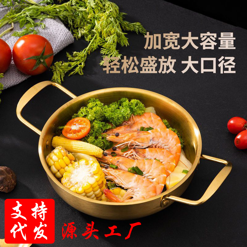 韓国式鍋のカップラーメン鍋のラーメン鍋の金色のネットの赤いステンレスの海鮮鍋の双耳のスープの鍋の乾燥鍋の厚い鍋