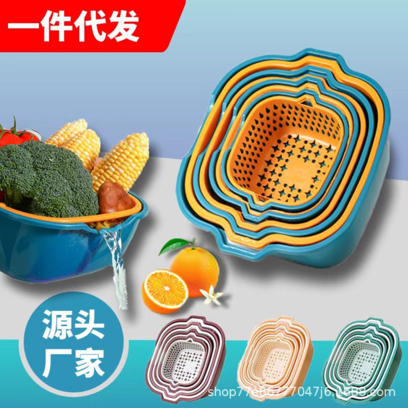 工場卸売り二重プラスチック家庭用台所の野菜を洗う水たまりかごの収納かご6点セット8点セット水たまりかごの果物かご