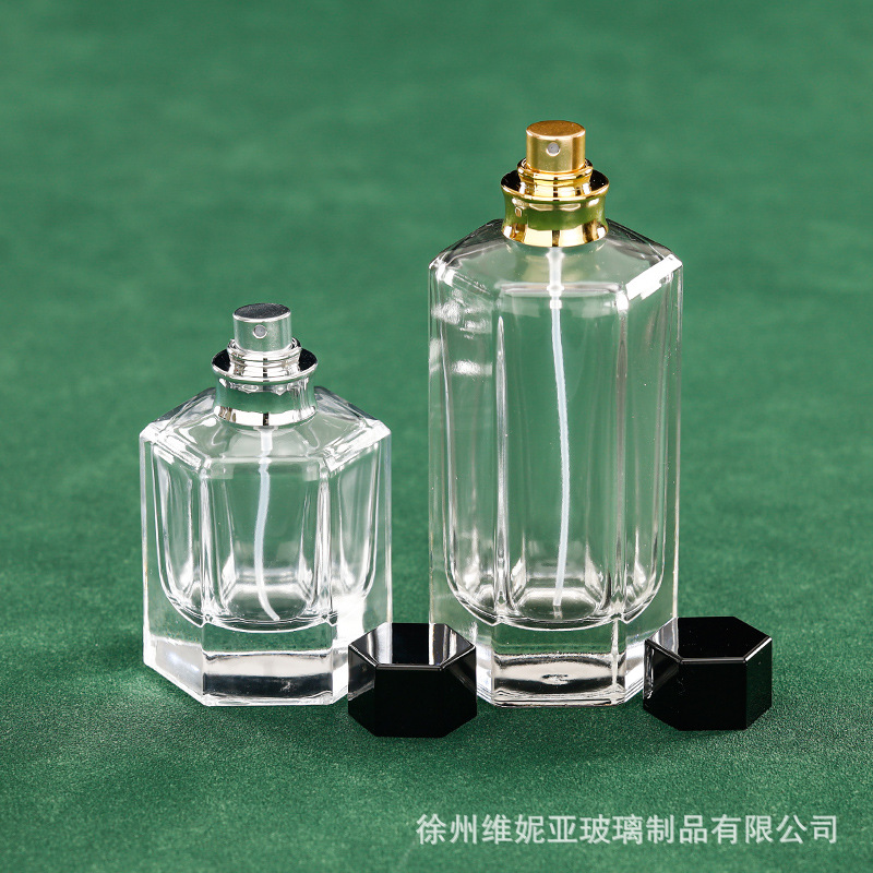 六角蓋香水ガラス瓶100ml六角形押しスプレーガラス瓶透明化粧品香水ガラス瓶