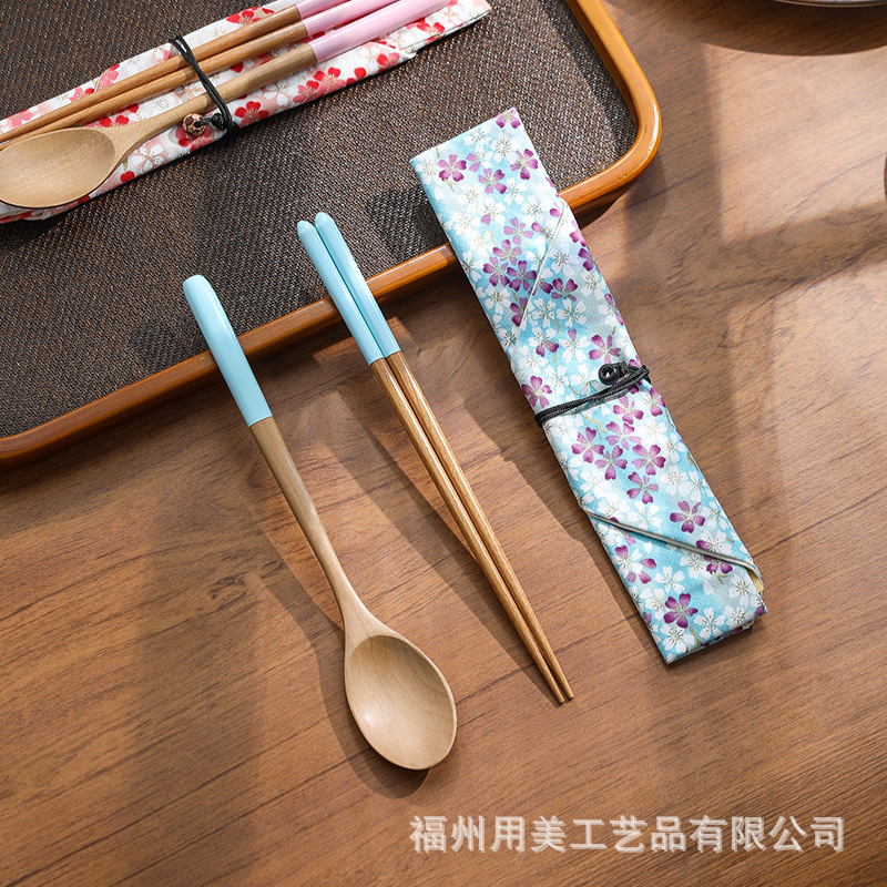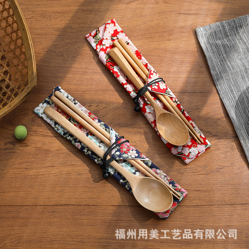 布袋箸携帯箸スプーンセットクリエイティブ和風ギフトカップル屋外旅行先木箸和式食器