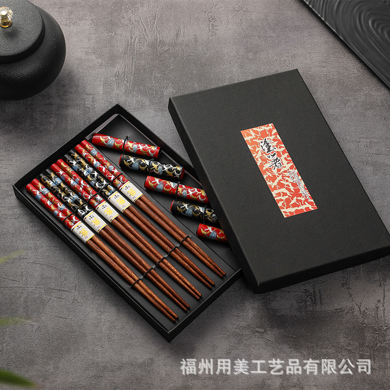 中国風の箸は外国のギフトボックスに赤い木の清明の上河図の贈り物の箸の家庭の国の潮の一人の箸をまねます。